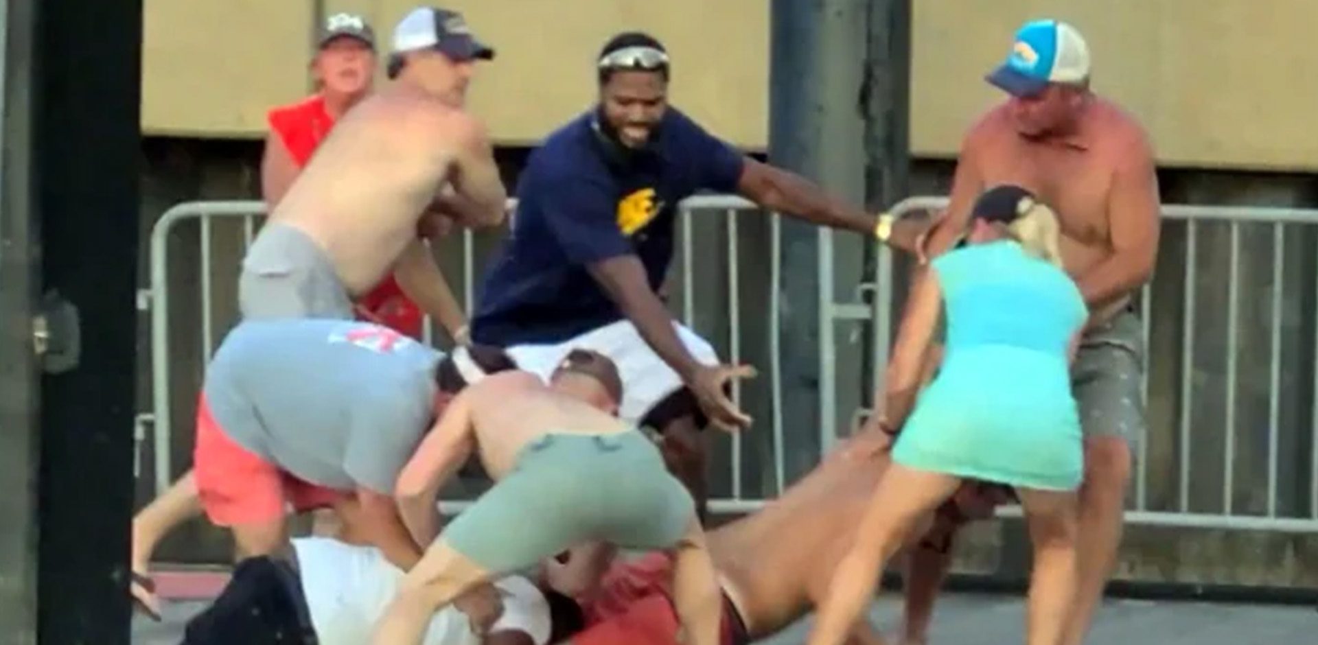The brawl quickly escalated, with people from both sides throwing punches and kicking each other. At one point, a Black man jumped into the water to try to break up the fight, but he was pulled back into the fray by a white man.